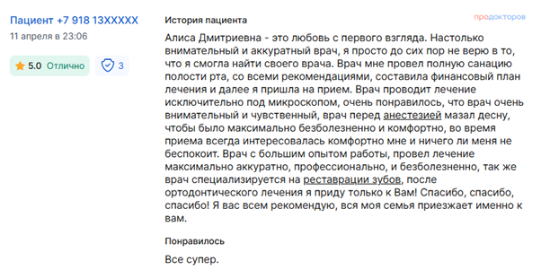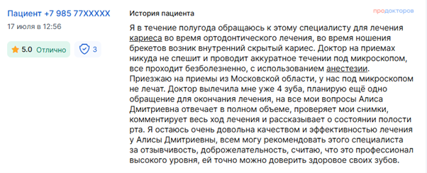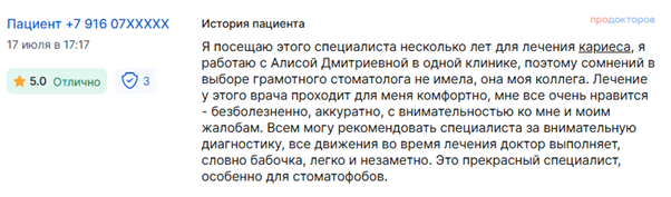 Алиса Дмитриевна — врач терапевтической стоматологии. В совершенстве владеет навыками эстетической реабилитации зубов. Она занимается прямыми и непрямыми реставрациями передних и жевательных зубов. Доктор тепло относится к своим пациентом, с каждым выстраивает доверительные отношения, дает развернутые ответы на интересующие вопросы. Проводит диагностику, составляет планы лечения и программы профилактики кариеса, подбирает средства индивидуальной гигиены.
